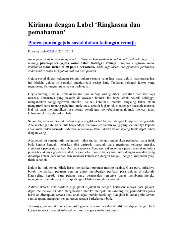 Panjang ringkasan anda hendaklah tidak melebihi 100 patah perkataan. Latihan Ringkasan 6 - Faedah Penglibatan Rakyat Ma. Thanks 5 Mei 2019 819 PTG Unknown berkata.